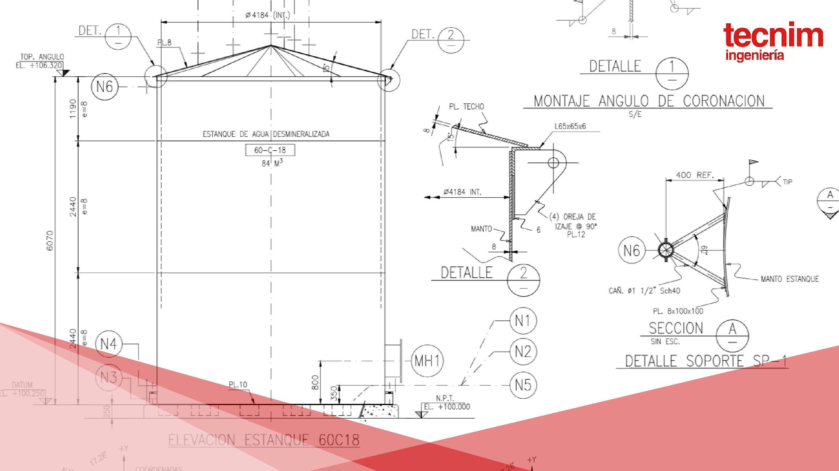 En tecnim te apoyamos para obtener como resultado el diseño detallado de tus futuras/nuevas instalaciones; etapa esencial para proceder a la construcción de las obras. Te preparamos los planos y documentos asociados a la disposición de equipos nuevos y reubicados; ruteos y canalizaciones de sistemas de tuberías para el transporte de fluidos, cálculo de los sistemas mecánicos, hidráulicos, almacenamiento de sólidos y fluidos, además de las estructuras de acero y fundaciones en hormigón. En complemento a lo anterior, te apoyamos en la preparación de especificaciones de equipos, materiales y suministros; la emisión de bases de licitación y órdenes de compra para todos los equipos y materiales cuyas compras no hayan sido tramitadas previamente.